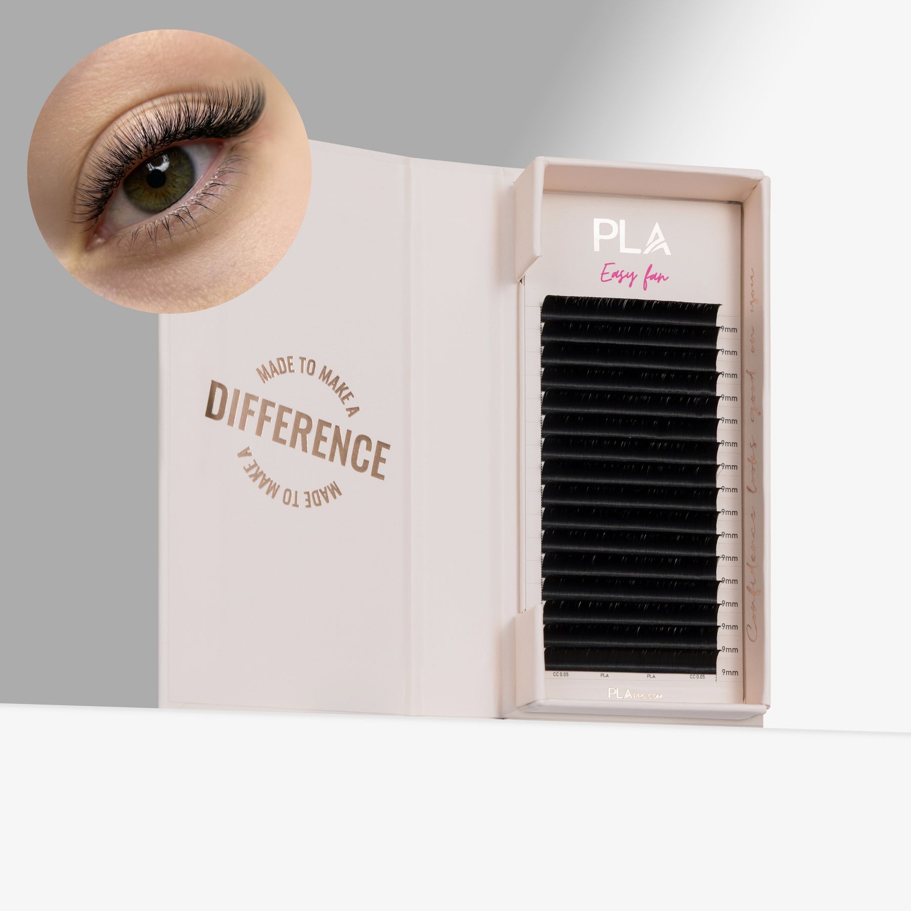 PLA Easy Fans are self-fanning, but are not ProMade fans. The bases stay together nicely, assisting you in making fans without the lashes falling apart. Our easy fan trays are ideal for pinching — once you pick up you can pinch to make the base smaller. Because it’s so simple to make fans with Easy Fans, we recommend you practice safe volume lashing and not pick up a heavier fan than your client’s natural lashes can handle.