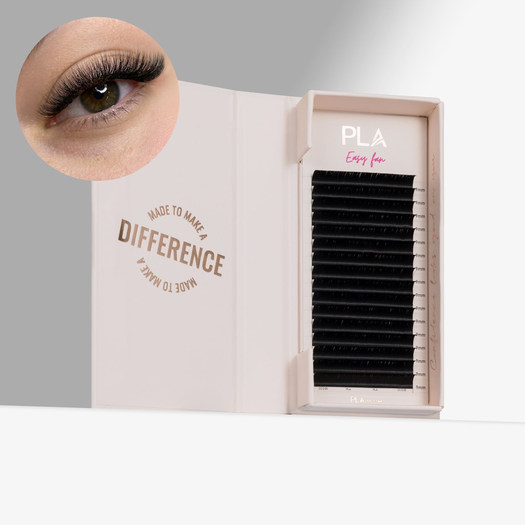 PLA Easy Fans are self-fanning, but are not ProMade fans. The bases stay together nicely, assisting you in making fans without the lashes falling apart. Our easy fans are ideal for pinching — once you pick up you can pinch to make the base smaller. Because it’s so simple to make fans with Easy Fans, we recommend you practice safe volume lashing and not pick up a heavier fan than your client’s natural lashes can handle.