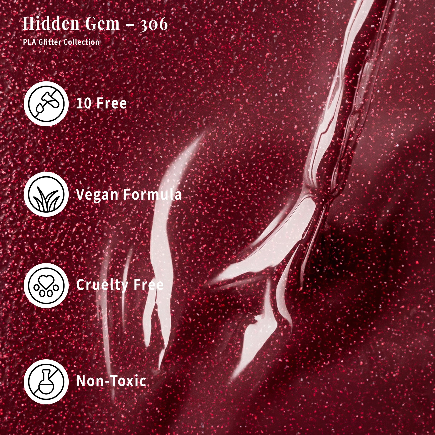 ¡Todos los productos de PLA Nail son 10-free! Esto significa que los productos de PLA Nail no contienen formaldehído, ftalato de dibutilo ni tolueno, también conocidos como el "Trío Tóxico". Además, están libres de resina de formaldehído, alcanfor, parabenos, xileno, ftalatos, fragancias o ingredientes de origen animal.