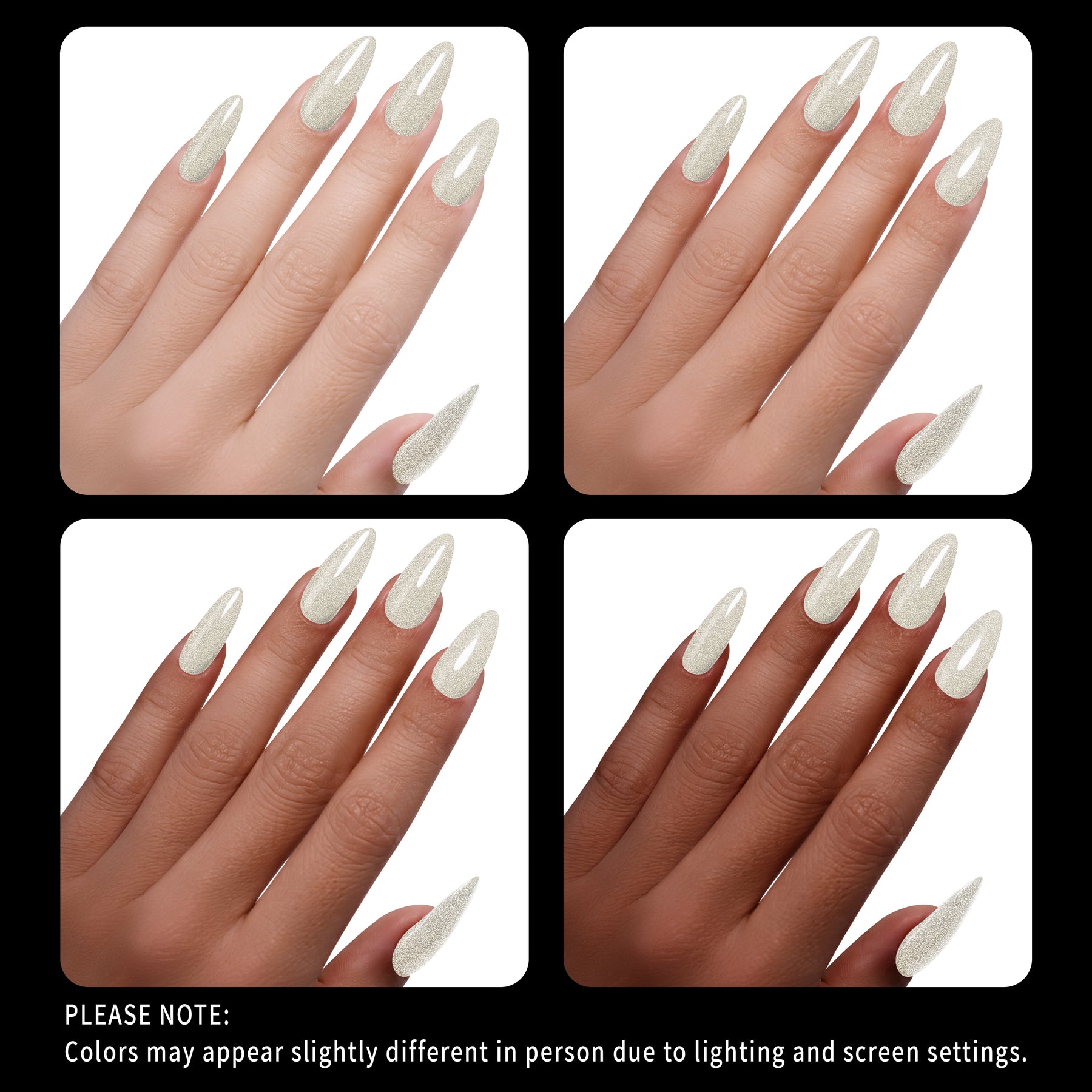 • Brillo champán con destellos holográficos arcoíris