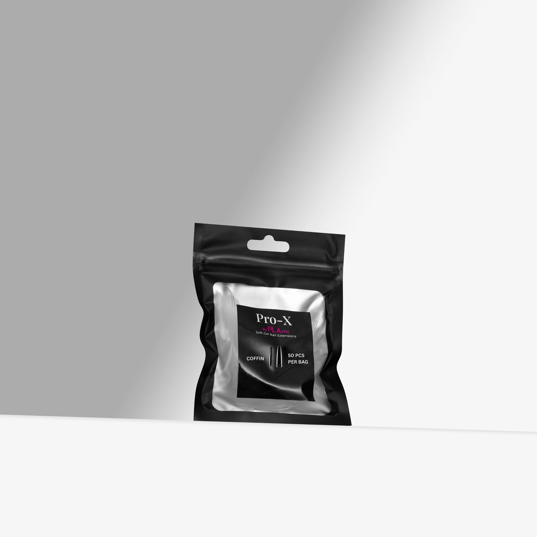 Đầu mở rộng gel mềm Pro-X của PLA Coffin có các cạnh thon thẳng, với đầu vuông. Được tạo hình sẵn và sẵn sàng để áp dụng, những đầu này được thiết kế cho bộ móng bền lâu và đồng đều.